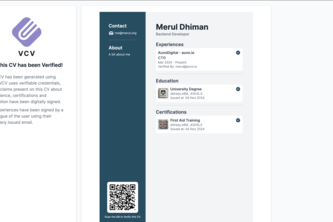VCV revolutionizes the CV, It allows for you to create verifiable and clean CVs where an employer can upload them and instantly verify them and view their individual verifiable credentials which combine to make the CV.
