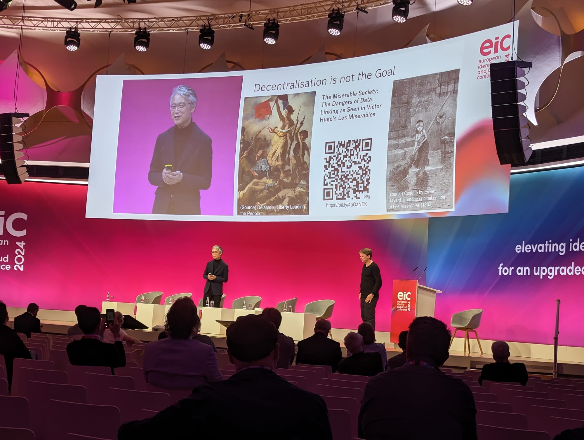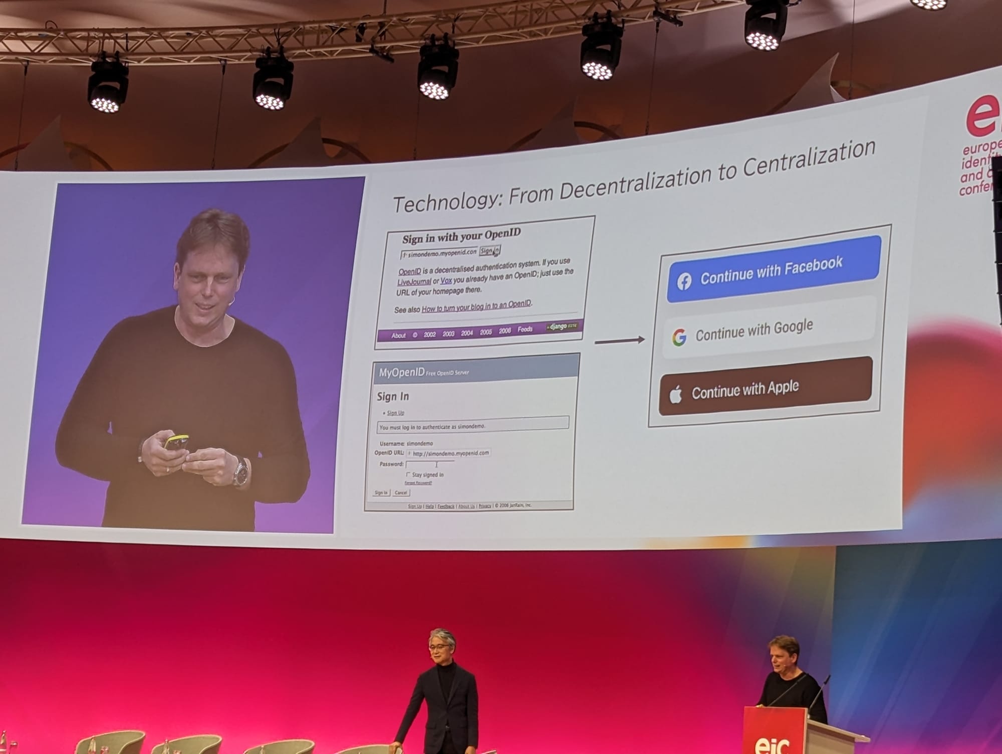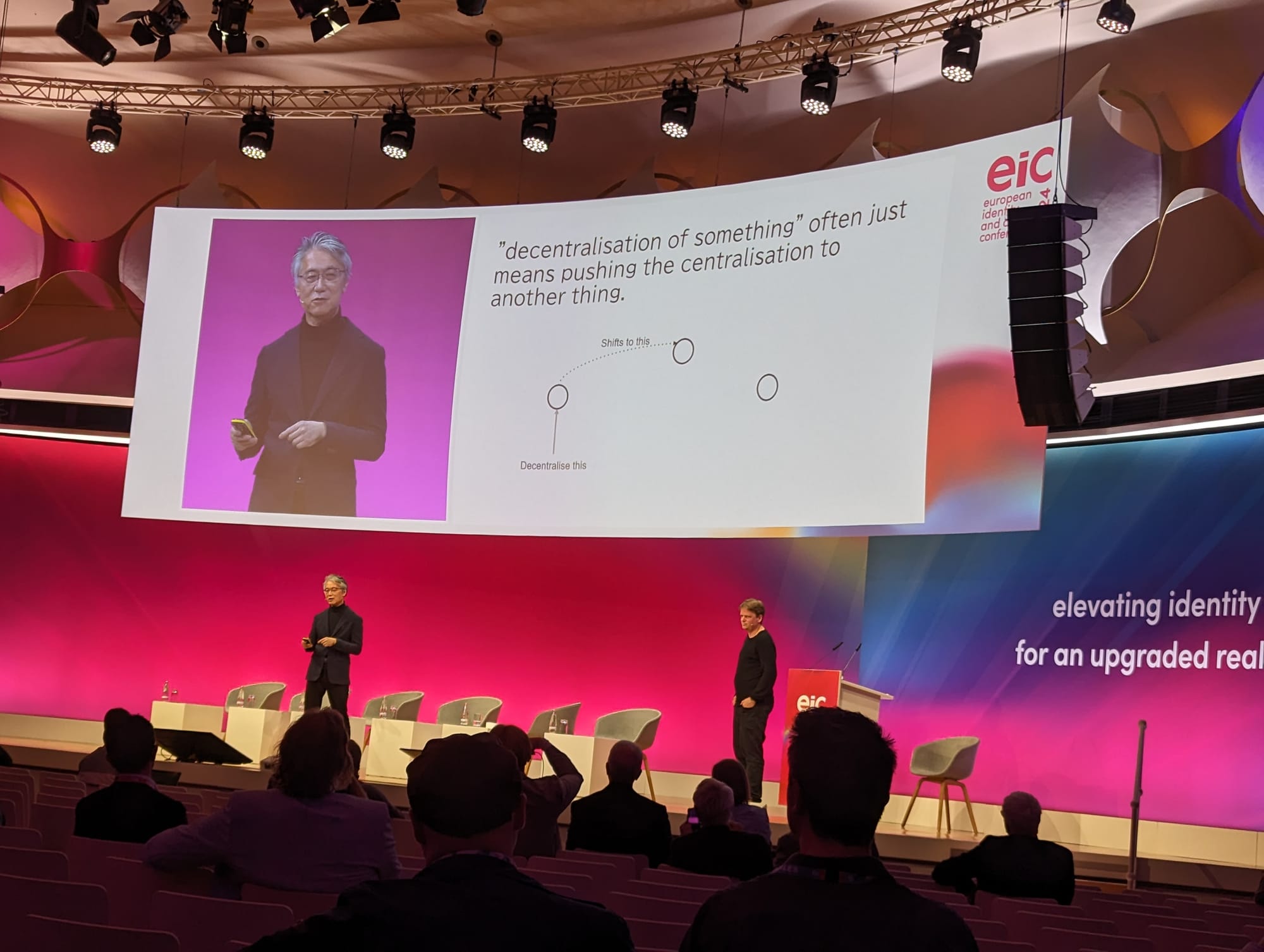 Digital identity pioneers Markus Sabadello and Nat Sakimura crossed swords on stage during an absorbing discussion at EIC in Berlin this evening.